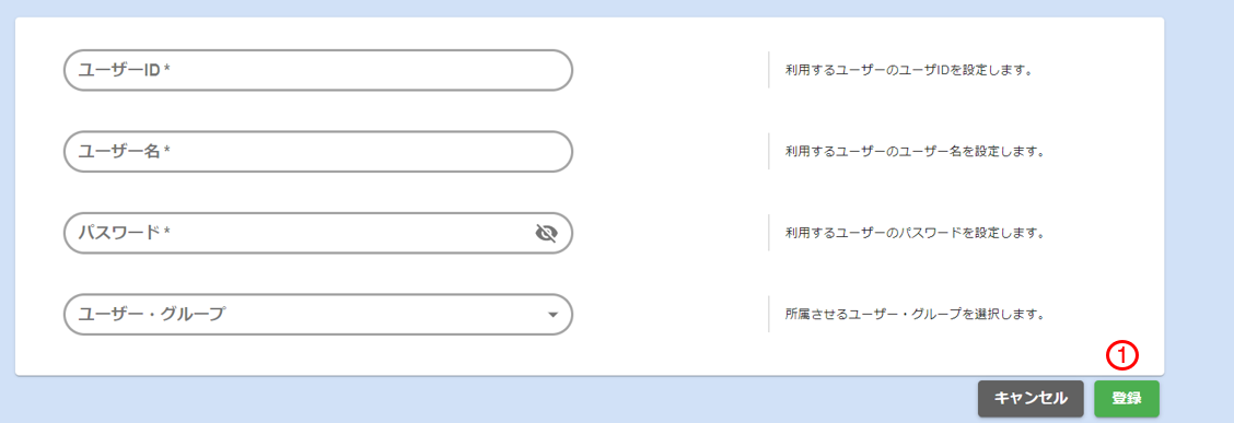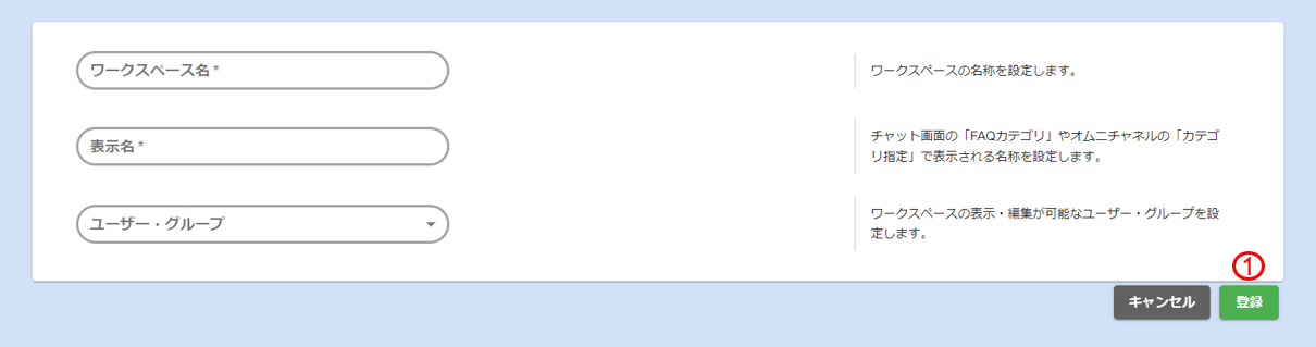 ワークスペースの登録画面を表示し、新規にワークスペースを登録することができます。