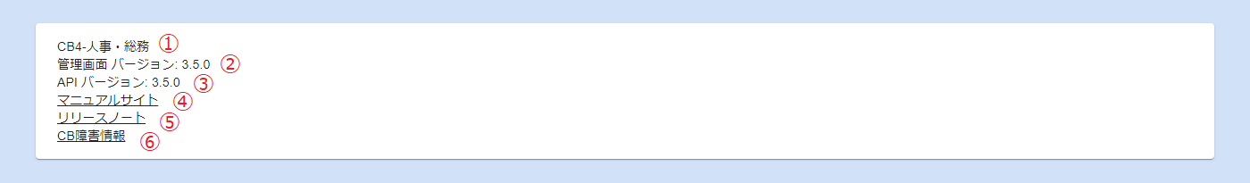現在お使いの製品のバージョン情報やマニュアル、リリースノート、CBシリーズに関する障害について閲覧することができます。