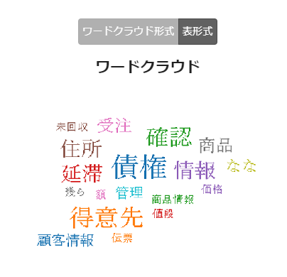 質問文の中で使われる頻度が高いワードを大きく表示します。