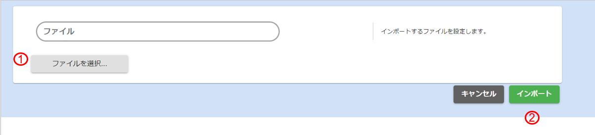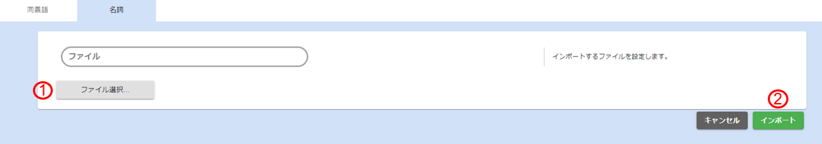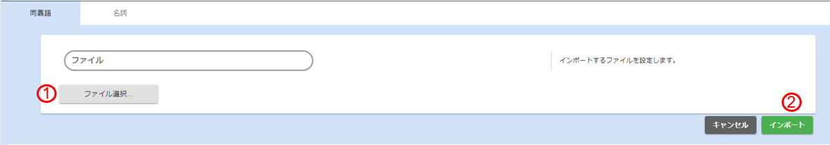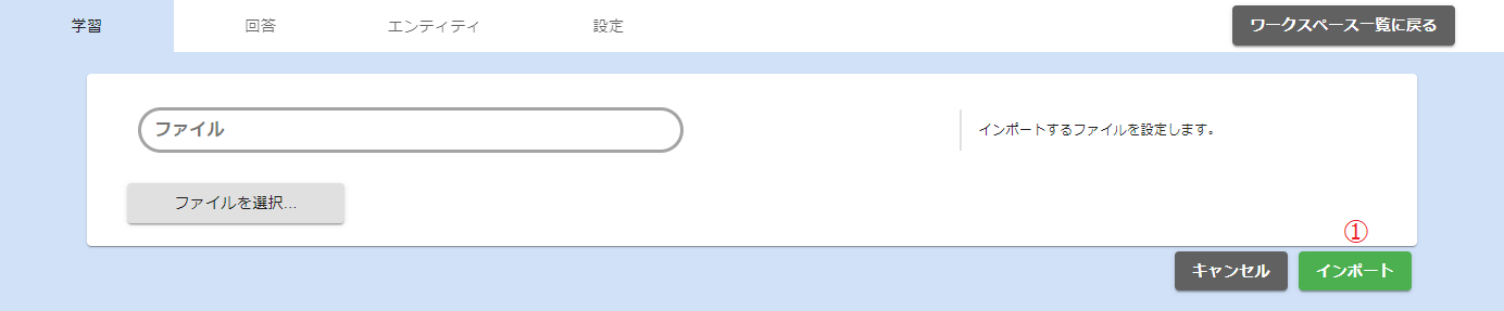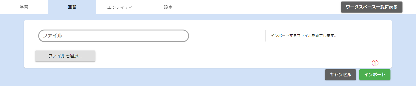 コーパス学習データインポート画面を表示し、回答クラスおよび質問文をCSV・ZIPファイルから一括してインポートできます。
