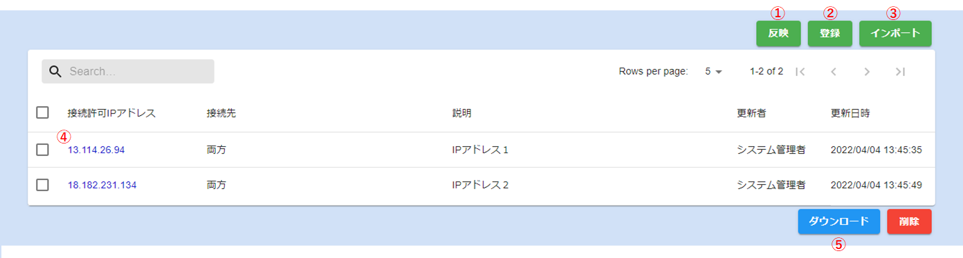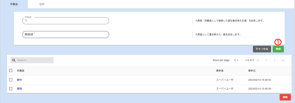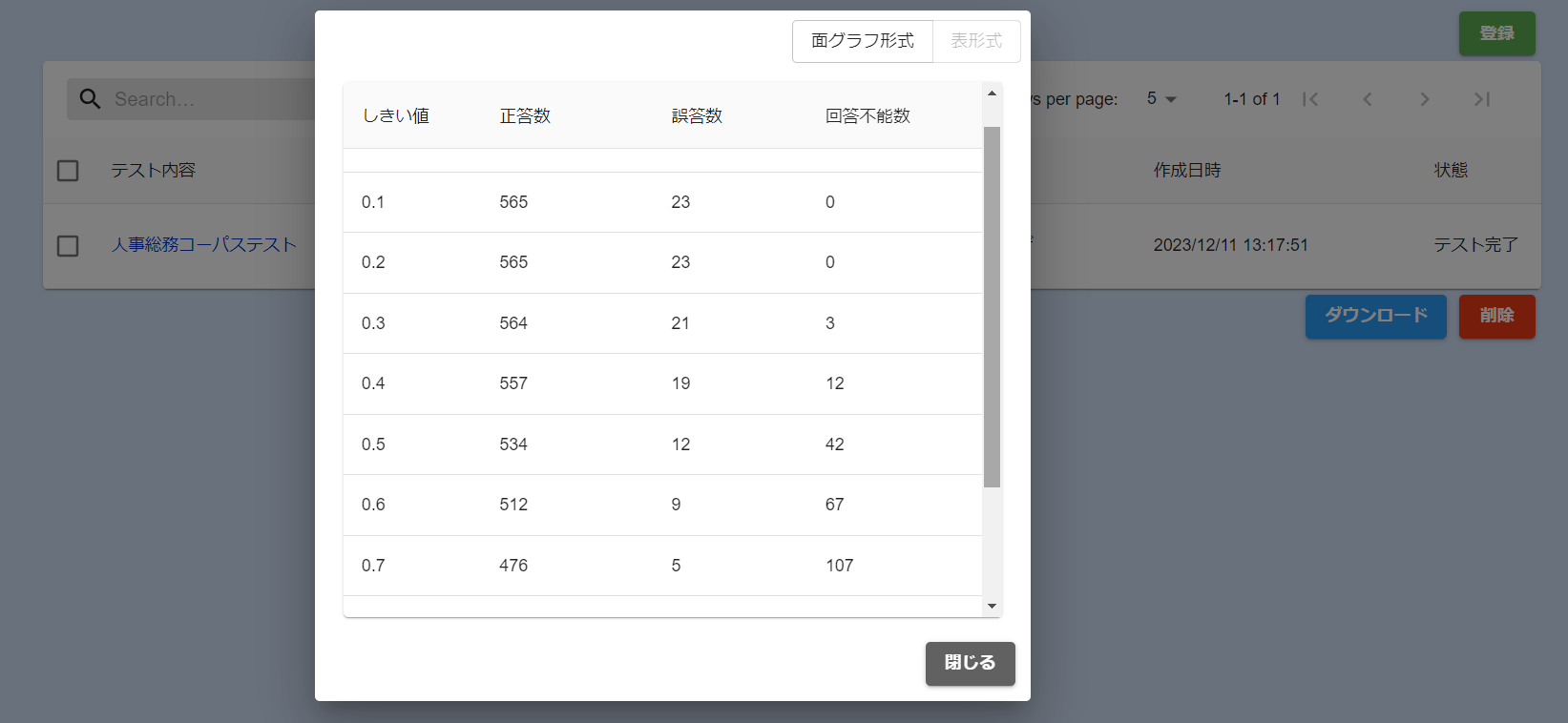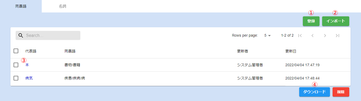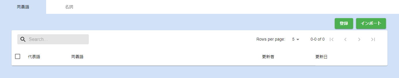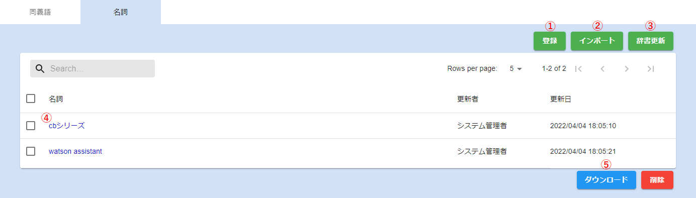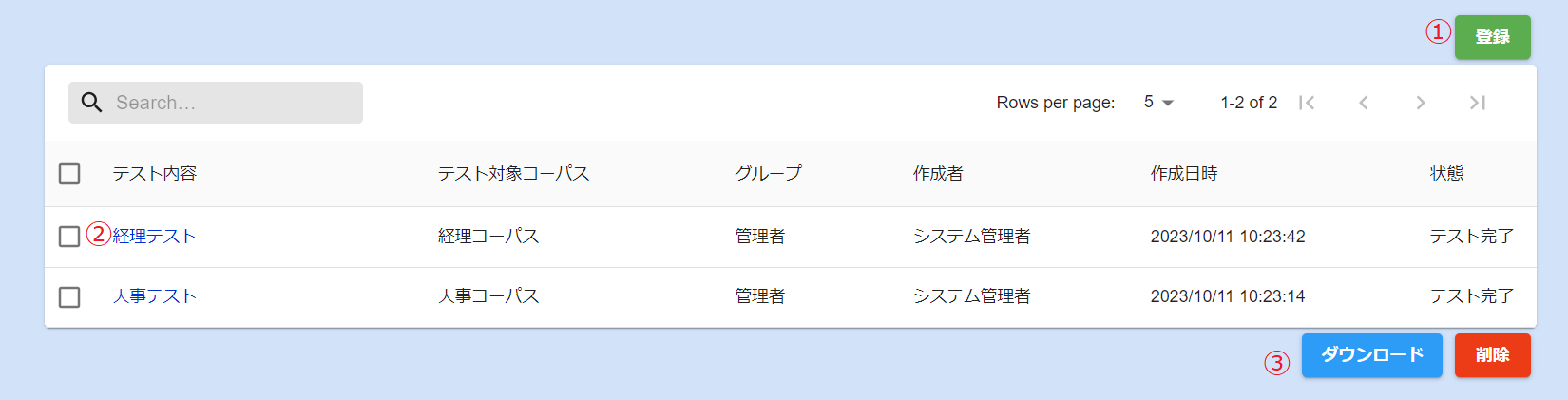 登録している学習データの一覧を表示し、学習データの登録や更新、削除、参照が行えます。