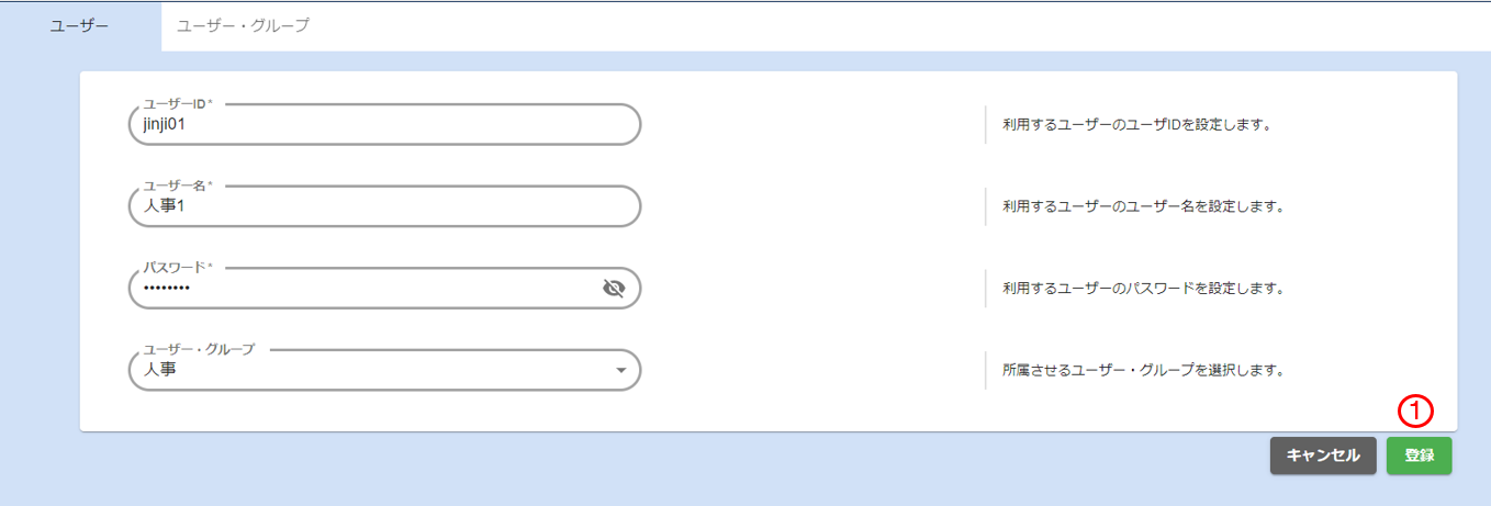 登録するワークスペースのユーザー・グループを選択します。指定したグループに所属しているユーザーのみ表示・編集ができるようになります。