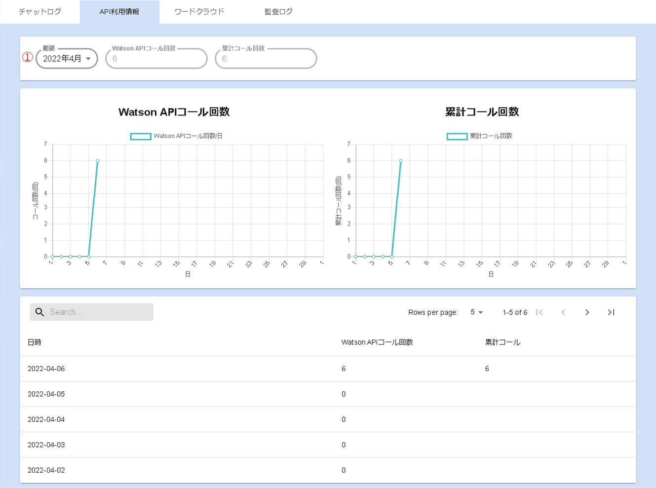 チャットログをもとにチャットボットの使用状況をグラフで確認できる機能です。