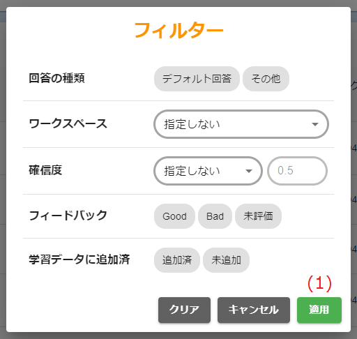 goodとbadの割合からチャットボットの応答が十分な精度であるか確認できます。