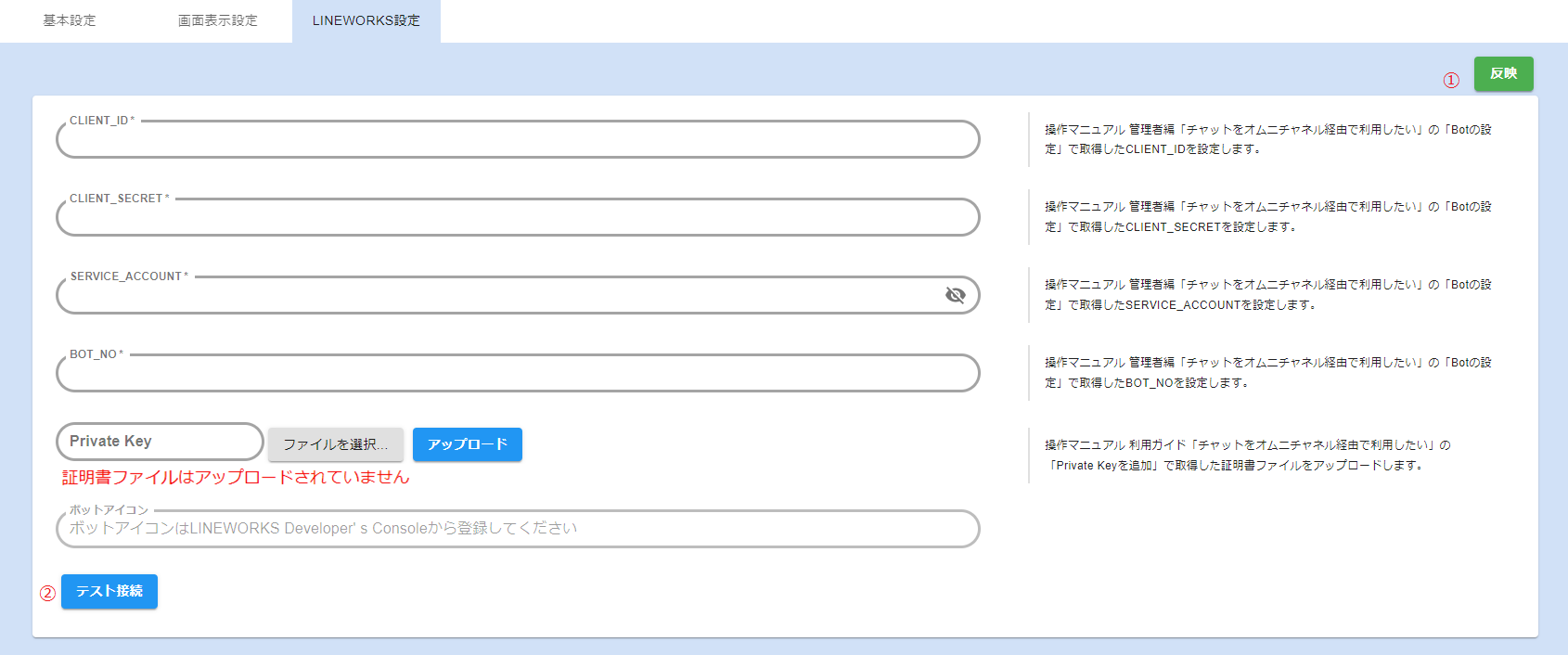 - LINE WORKS設定:チャットをオムニチャネル経由で利用したい