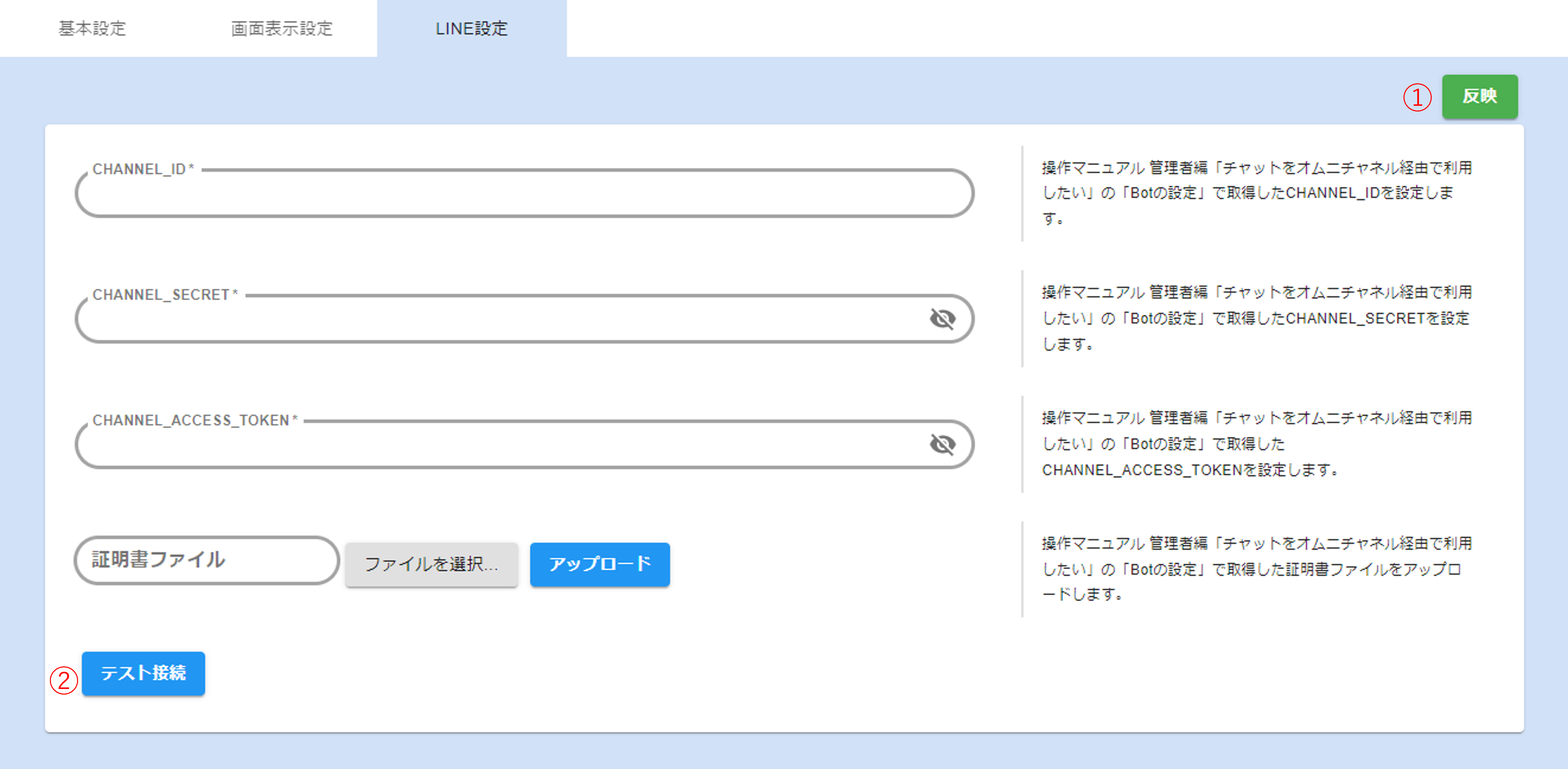 - LINE設定:チャットをオムニチャネル経由で利用したい