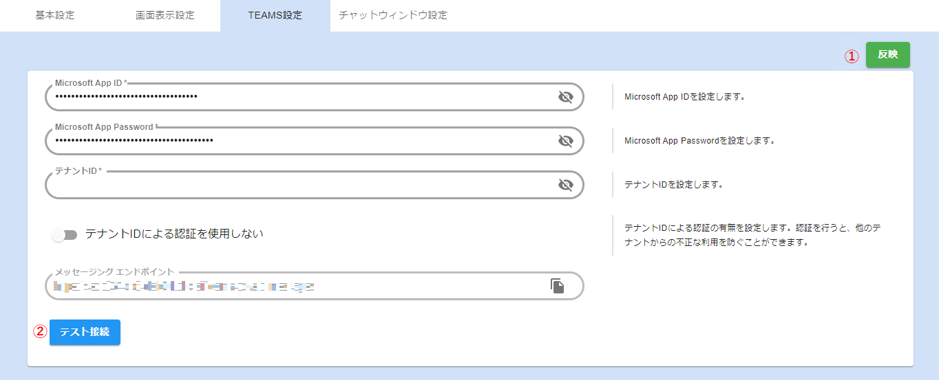 Teamsと連携してチャットを行うために必要なエンドポイントのURLです。