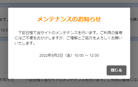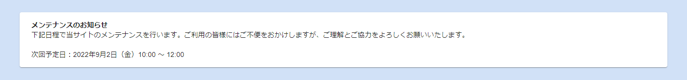 次回のメンテナンスが予定されている場合、メンテナンスの情報が表示されます。