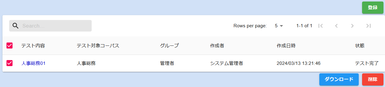削除したい質問文の横のチェックボックスをクリックした後、削除ボタンをクリックします。