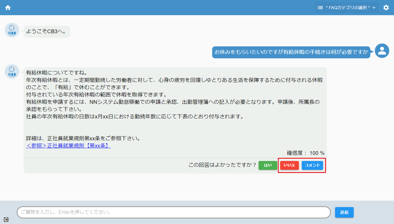 - Yes、Noで答える回答は汎用的な回答に変更します。