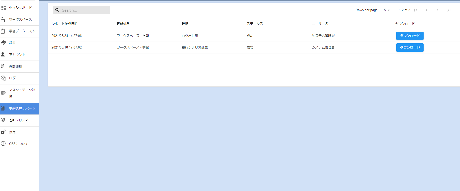 No.1 インポート処理の結果を更新処理レポートから確認できるようにしました。
